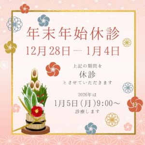 2025年12月28日~2026年1月4日まで年始休診とさせていただきます。