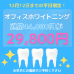 こんにちは☀️ ひがみ歯科立川クリニックです🦷🦷🦷 今日から オフィスホワイトニングキャンペーン を開始します❤️ 12月12日(金)までの期間限定で 通常44,000円のオフィスホワイトニングが 29,800円...